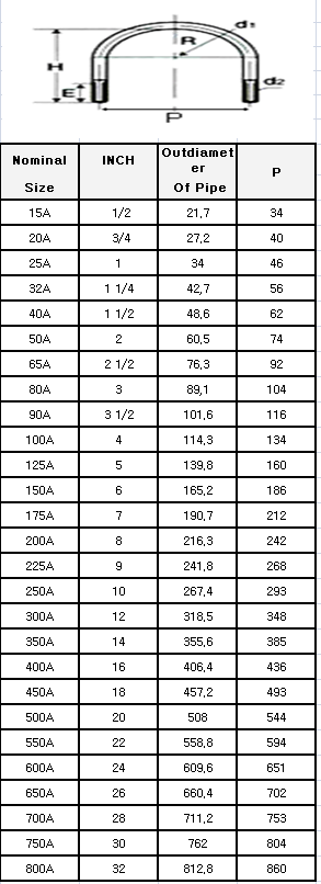 U BOLT METRIC,INCH 호칭 구분표