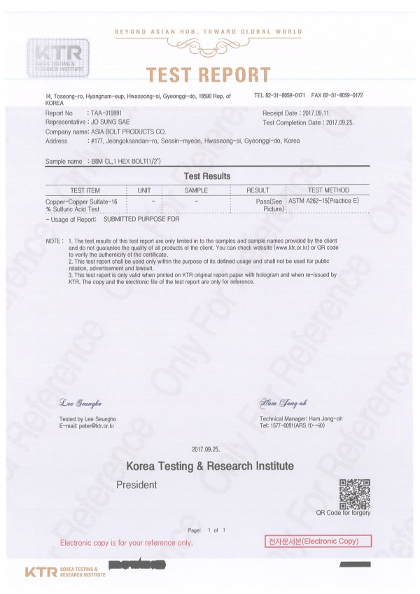 입계부식시험(COPPER-COPPER SURFACE-16% SULFURIC ACID TEST)